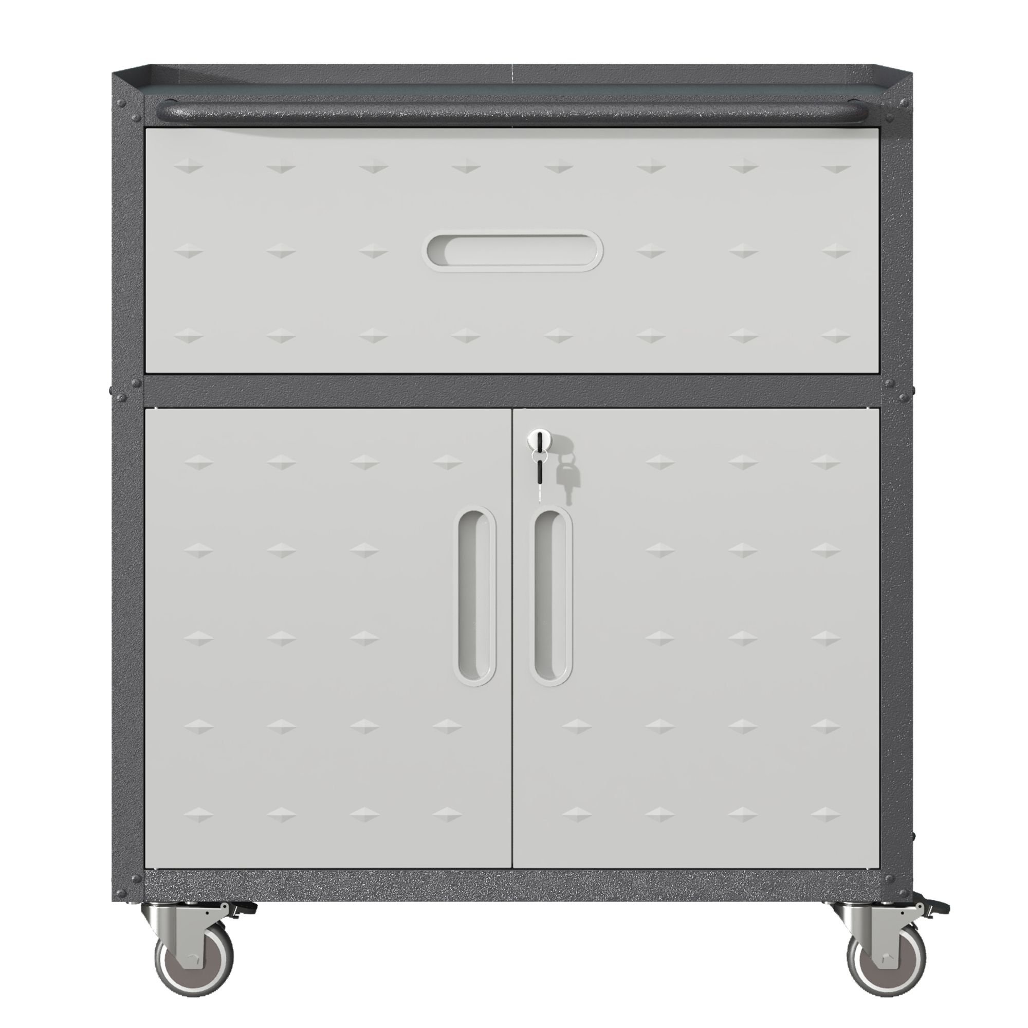 Home > Sturdy and Durable Metal Tool Cabinet for Garage with Wheels - Mobile Heavy-Duty Storage Cabinet with 1 Drawer and 2 Locking Doors